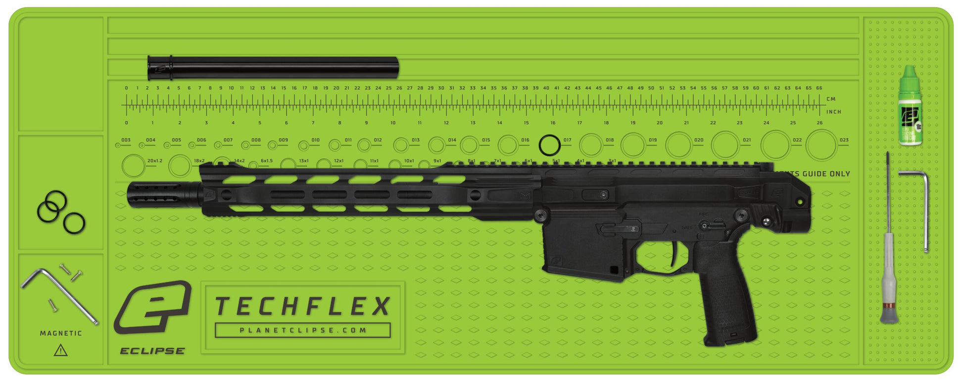 The official large format Planet Eclipse Tech Mat used by Planet Eclipse Techs. The perfect surface for maintaining and repairing your paintball markers or airsoft equipment.